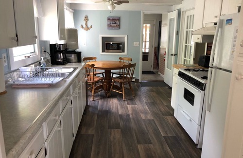With two restaurants (open seasonally) within close walking distance, you may never have to cook! But if you feel like grilling out, there is a gas grill. The kitchen is stocked with all of the utensils, cookware and appliances needed to cook a great meal. Table and chairs are provided on the front deck and back patio so you can enjoy your meals with sunrises or sunsets.