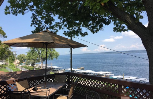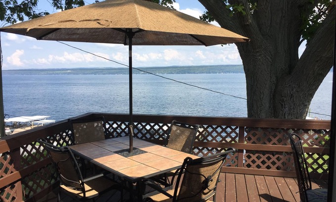 Stay in the center of everything that the Finger Lakes has to offer - wineries, breweries, sightseeing, boating and much more! This classic two-story lake house features a spacious, 180 degree lake-view living room, leading to a 14x20 foot deck overlooking Seneca Lake. Three bedrooms provide lots of room for friends and family - 1 King bed room, 1 Double bed room, and 1 with a queen and 2 single twins. Two full baths, both with shower/tub combo, and a bright, fully equipped kitchen. Wi-fi, linens and towels provided.