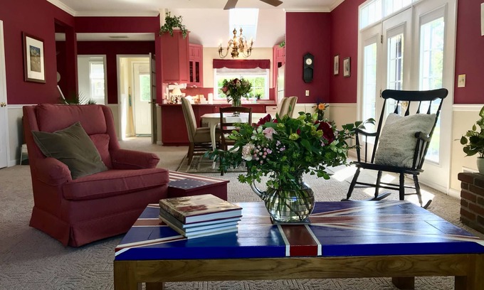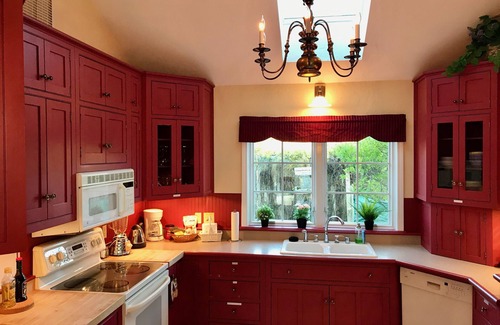 "Plum Retreat" is a private, and cozy-and-yet-spacious portion of an adorable cottage hiding behind an ornate garden gate, and sleeps 2-6 guests over two levels. The property is part of the picturesque "Green Gables" property in the north part of Ephraim, and is within easy walking distance to galleries, shops, mini-golf, breakfast and pizza, and a short drive from Ephraim village and the water. Green Gables itself has the flavor of a romantic bygone Americana era, and boasts beautiful manicured and award-winning gardens and additionally (in the past, and in the future!) another very large enclosed rear garden area (currently under exciting development). The property is suitable for couples or families and at night it's dark and quiet for stargazing. The house oozes feel-good charm, with lots of windows and natural light, architectural details, and plenty of space indoors and out, to play and relax in. Outside there's a fantastic patio lounge area and professional grill to enjoy, and inside a formal fireplace invites you to curl up on the sofa-bed (with an old record playing on the vintage stereo/record player)? Full kitchen, with oven, fridge, dishwasher, microwave, toaster etc. Upstairs there are two very large bedrooms (one with a king bed, the other with two queens), and there's a true queen sofa-bed downstairs. All the bedding is non-allergenic. Wi-fi, a 49" TV with cable channels, Netflix and Amazon Prime in the living room, and a washer and dryer upstairs. The space works well for families, or two small families to share, or just for a couple looking for a romantic or memorable Door County vacation. In response to COVID-19 cleaning and sanitizing will be thoroughly undertaken. Thank you!