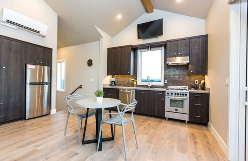 Discover Tetherow’s 4-bedroom plus studio contemporary homes in the Trailhead neighborhood. Features of the South Fork include single-level living in the main house, a well-equipped kitchen, a two-car garage with separate studio unit, and a patio with a private hot tub, BBQ, and fire pit. You can also find forest trails just down the street.. Enjoy the amenities of Tetherow Resort and the proximity to all the beauty Bend has to offer, 10 minutes to downtown, 20 minutes to the Mt. Bachelor, inspiration in every direction.