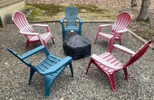 In the summer months, watch the deer go by and enjoy the weather rain/shine from the sunroom equipped with a patio furniture. The deck lights can be turned on to set the perfect mood throughout the night. Citronella candles are avaliable to help guest keep mosquitoes at bay. In the front of the property sits six chairs surround a fire pit with a perfect view of the stars. Mosquito repellent is recommended.