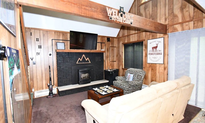 Pocono Cabin w/Jacuzzi, W&D, and Indoor Pools is located in Bushkill. Pocono Cabin w/Jacuzzi, W&D, and Indoor Pools provides accommodation, featuring TV, Kitchen, Child Friendly, among other amenities. This Cabin features TV, Kitchen, Child Friendly, to make your stay a comfortable one.