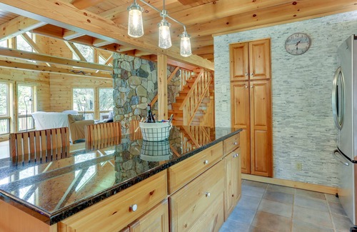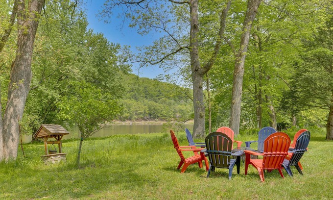 Enjoy a waterfront retreat at this 4-bedroom, 3.5-bath vacation rental in Damascus! Nestled along the border of New York and Pennsylvania, this home offers easy access to endless outdoor adventure in both the Pocono and Catskill Mountains. Take the provided kayaks out for a ride along the Delaware River before heading back to this custom cabin-style home to have a barbecue on the back deck, roast marshmallows by the fire pit, or host family game night in the sun-kissed living room.