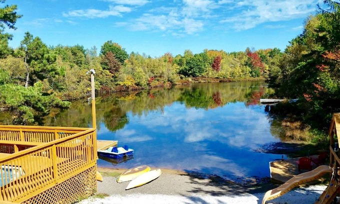 In the winter, go tubing, ice skating and fishing right at your backyard. The entire lake in front of us freezes and form a natural skating ground. Very unique and private place for family and friends to play with snow and build snowman—welcome to our winter wonderland! Stay close approximaty to Camelback ski and tubing, Kalahari, Mt. Airy casino, premium outlet and restaurants. Book now to secure your dates.