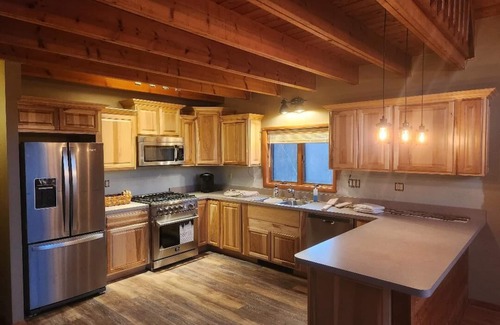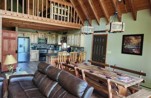 5 Bedroom 3 bath Chalet with loft sleeps 16 with 10 ( bed linens are not provided, Please bring your own. Comforters, Pillows are provided ) Property sits on 9 acres with a private 2 acre lake with a dock and canoe. Two bedrooms on the 1st floor have 40" led tv's, one bedroom has a queen size bed and the other bedroom has 2 twin XL Bunk Beds. The master bedroom on the 2nd floor has a 65" led tv with a king size bed and own private bathroom. The loft also has a 40" tv with a pull out bed for 2. On the lower level there are 2 additional bedrooms with a full bath, shower stall. One bedroom has 2 queen bunk beds and the other room has a king bed. All TV's are smart TV's with the capability to stream your your favorite TV shows, satellite internet as well ( WIFI ). On the first floor there is a wood burning stove and a gas log fireplace, ( AC as well ) with 2 sofas. Kitchen has all up dated appliances. Washer and dryer on the first floor. All bed linings supplied if you desire or can bring your own. A mountain setting with all the amenities from home. 1/2 mile from State game lands. Ski, snowboard, swim, hunt, fish, hike, kayak, bike, or spectate at a world-class racetrack!