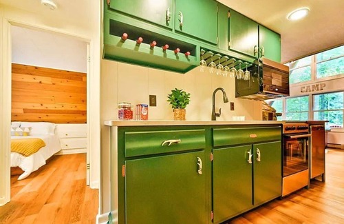 More of morning person? Sip your coffee on the deck soaking up the serene views of the surrounding forest and at night transport yourself to the days of your childhood in the sleeping loft where you’ll feel like you’re in your own personal wood-lined treehouse.