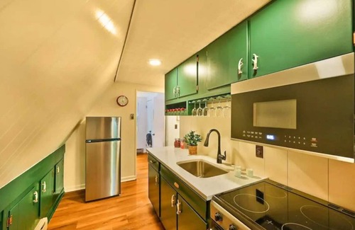 Enjoy the warmth of the wood-burning fireplace as you settle in for a movie or board game night in the living room, or comfortably cook your favorite cozy meal in the fully equipped kitchen.