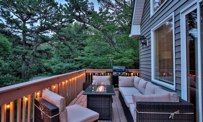 This home boasts 3 floors of spacious living for you and your group, with a large outdoor patio that has a spacious seating area w/ a propane fire-pit and a grill for all the summer BBQ's!