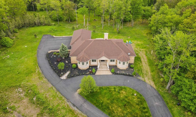 Escape the hustle of the city to our Poconos Villa! When Only the Best of Everything will Do! From the Moment You Drive in the 20' Wide Drive to Walking in the Foyer this Home Will Entice! Spread OVER 10 Acres of Land, in the Middle of it All Ideal Vacation Getaway, It's Minutes from Kalahari Water Park. It's a 10 BR,5 BA Home (add fun to your vacation-the house offers a Game Room, Pvt. Movie Theater ) Also it has a Finished Basement & Clear Span 4 Car Collector Garage Offers It All! Why Cater a Dinner Party when You Have This Kitchen! Custom Marble Tile Floors & Soaring Ceilings! View Virtual Reality Tour & Pictures Today!