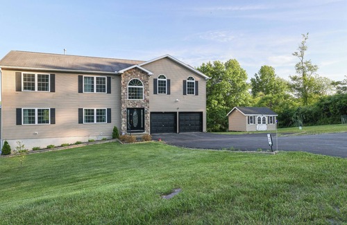 Superhost status on other sites with 17 five star reviews. Welcome to your dream retreat in the heart of the Poconos! Nestled on a serene 1+ acre lot surrounded by towering trees, this spacious 4-bedroom, 10 beds, 3.5-bath haven offers the perfect blend of luxury and tranquility. Indulge in ultimate relaxation in the large 7-person hottub, perfect for unwinding after a day of adventure. Hidden behind a bookshelf you’ll discover a secret spa, featuring a refreshing cold plunge and an inviting 8-person sauna. It's your own private oasis within an Oasis.