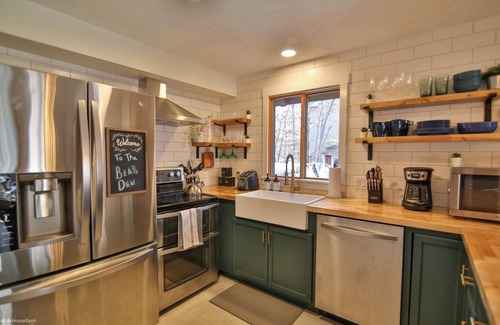Enjoy a fully stocked kitchen, heated bathroom floors, electric fireplace, pool table, and games. Outside, relax in the cedar hot tub, grill on the BBQ, or unwind by the fire pit.