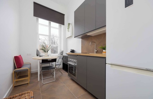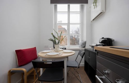 Apartment located in a renovated historic building on Podwale Street in Warsaw. The attractiveness of this property is enhanced by the fact that it is located just a 2-minute walk to the Old Town Square. The Royal Castle at the Castle Square is 450 m from the apartment. The charming location of the facility gives you the opportunity to feel the atmosphere of the Old Town, and a walk through the romantic streets of the Old Town is an opportunity to discover the charms of the historic center and spend pleasant moments in an unforgettable environment. The neighborhood abounds with a wide selection of restaurants serving both Polish and international cuisine. Moments of respite during sightseeing can be found in one of the atmospheric cafes serving delicious coffee. Once you get the urge to take a break from the hustle and bustle of the city, head to Krasinski Garden (500 m) near the baroque palace. The historic park with its playgrounds and war memorial is the perfect place for a stroll, a picnic and relaxing in nature. The location of the apartment provides easy access to other districts of Warsaw, both by public transportation and by car. There are numerous bus and streetcar stops in the neighborhood, and the nearest subway station is about a 12-minute walk away. The neighborhood has a widely developed retail and service infrastructure, which undoubtedly increases the comfort of your stay. Chopin Airport is 12 km from the property, and the way to the Central Railway Station is 3 km. The location of the apartment guarantees a comfortable, practical and extremely atmospheric place to stay in Warsaw.