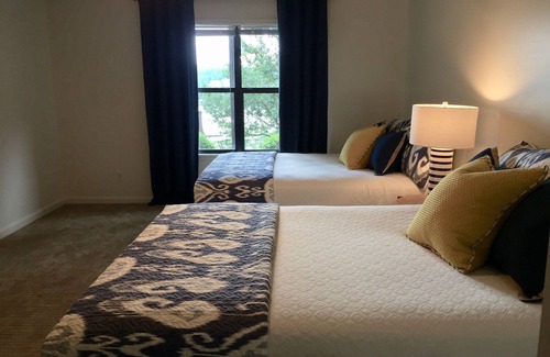 4 bedroom, 3 bath. 3 bedrooms have king bed, 1 bedroom has 2 queen beds and bunk bed downstairs. 2 baths up stairs, 1 bath down. Fresh update. New carpet, floors and paint. Pool table downstairs with TV. Double decker pier with swim area and ladder. Deep water area. Covered boat slip available, 1 PWC dock. Washer and dryer. Satellite TV and WIFI. Gas grill on upper deck.
