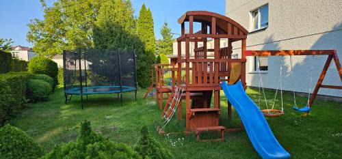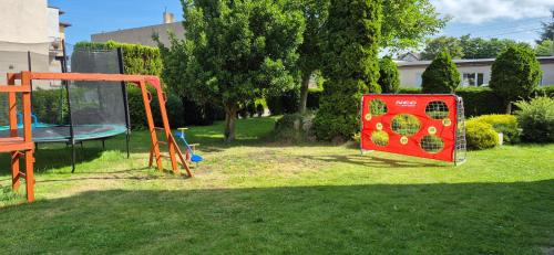 Providing pool views, POKOJE GOŚCINNE -MARIA- in Ostrowo provides accommodations, a seasonal outdoor swimming pool, a garden, a bar, and barbecue facilities. Housed in a building dating back to 1990, this bed and breakfast is a 15-minute walk from Ostrowo Beach and 29 miles from Gdynia Harbour. There's a sun terrace and guests can access free Wifi and free private parking. At the bed and breakfast, each unit is equipped with a wardrobe, a flat-screen TV, a private bathroom, and bed linen. Each room is equipped with a kettle, while some rooms are equipped with a fully equipped kitchen with an oven, a microwave, and a stovetop. In some units there's a dressing room for guests to change in. The breakfast offers à la carte, continental options and warm dishes and cheese are being served. Guests can enjoy a meal at the on-site family-friendly restaurant, while packed lunches are also available upon request. For guests with children, the bed and breakfast offers outdoor play equipment. The bed and breakfast also offers outdoor fireplace and a picnic area for a day outdoors. Train Station is 30 miles from POKOJE GOŚCINNE -MARIA-, while Shipyard Gdynia is 31 miles away. Gdańsk Lech Wałęsa Airport is 45 miles from the property.