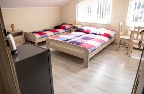 Pokoje Gościnne MIKAS enjoys a location in Ostrowo, a 16-minute walk from Ostrowo Beach and 29 miles from Gdynia Harbour. This apartment features free private parking, a shared kitchen, and free Wifi. Outdoor seating is also available at the apartment. At the apartment complex, every unit is fitted with a wardrobe, a flat-screen TV, a private bathroom, bed linen, and towels. A microwave and kettle are also available. The rooms are equipped with heating facilities. For those times when you'd rather not eat out, you can cook on the barbecue. Guests at Pokoje Gościnne MIKAS will be able to enjoy activities in and around Ostrowo, like walking tours. Outdoor play equipment is also available at the accommodation, while guests can also relax in the garden. Shipyard Gdynia is 31 miles from Pokoje Gościnne MIKAS, while Gdynia Central Railway Station is 31 miles from the property. Gdańsk Lech Wałęsa Airport is 45 miles away.