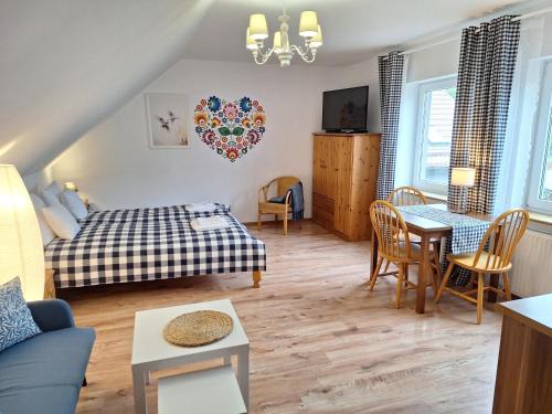 Pokoje Podzamcze enjoys a location in Stare Drawsko, 29 miles from Othodox Church of the Holy Trinity and 31 miles from Pomeranian Dukes' Castle. There's a private entrance at the homestay for the convenience of those who stay. There's an outdoor fireplace and guests can access free Wifi and free private parking. The homestay provides guests with a patio, inner courtyard views, a seating area, a flat-screen TV, a fully equipped kitchenette with a microwave and a fridge, and a private bathroom with shower. A terrace with an outdoor dining area and lake views is offered in select units. At the homestay, units include bed linen and towels. A continental breakfast, comprising warm dishes and cheese is served at the property. For those times when you'd rather not eat out, you can cook on the barbecue. For guests with children, Pokoje Podzamcze features a children's playground. Railway station Szczecinek is 30 miles from the accommodation, while The Church of the Blessed Virgin Mary is 31 miles from the property. Solidarity Szczecin-Goleniów Airport is 71 miles away.