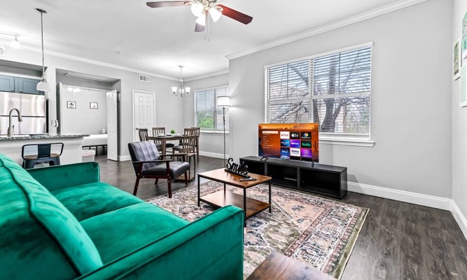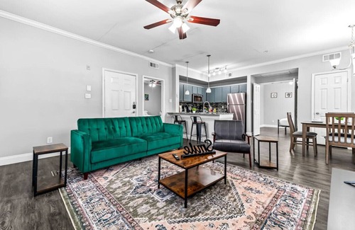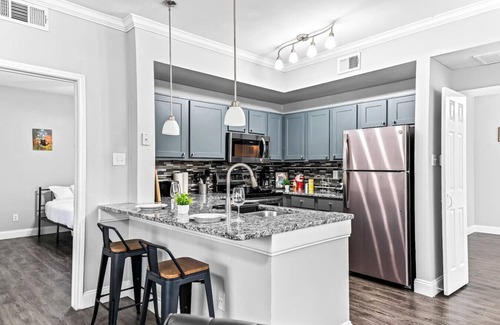 Relax in this stylish 2-bedroom apartment just 9 miles from downtown Fort Worth. Enjoy resort-style amenities, including a sparkling pool, BBQ grill, and lounge area. Stay active on the blue basketball court or in the fully equipped fitness center. The apartment features spacious interiors, modern decor, and all essentials for a comfortable stay. Ideal for families, friends, or business travelers seeking convenience and comfort. Book now for an unforgettable Fort Worthexperience!