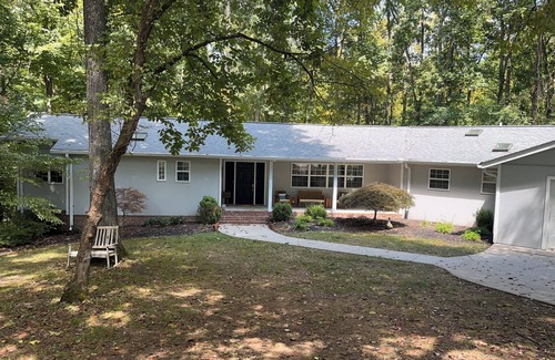Close to town but secluded. The very large deck, living room and rec room allows families to spend time together while also providing privacy to just read a book. The dining room seats 10.