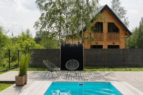 Polna Osada Nadkole in Nadkole provides accommodations with a fitness center and a garden. This vacation home features air-conditioned accommodations with a patio. The accommodation offers a sauna, free Wifi throughout the property, and family rooms. The vacation home provides guests with a terrace, garden views, a seating area, a flat-screen TV, a fully equipped kitchen with a dishwasher and a fridge, and a private bathroom with shower and a hair dryer. There's also a stovetop, kitchenware, and a kettle. At the vacation home, the units come with bed linen and towels. In addition to a seasonal outdoor pool, Polna Osada Nadkole also provides outdoor play equipment. Warsaw Modlin Airport is 43 miles away.