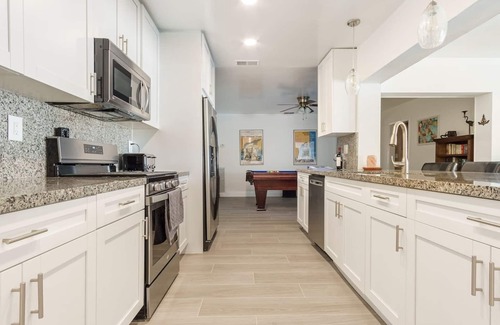 Purely Pompano! Spacious & sanitized 5BD/3BA luxury waterfront, ocean-access canal (Bahama Canal), exclusive Cypress Creek. Solar-heated salt water pool & bbq/patio, game room with an "Old time arcade" set up for one or two players, with 60 games including classics such as "Pac Man", "Donkey Kong" and "Space invaders", "giant connect four", 55 inch TV, couch and game chairs. The Billiard room has a "Brunswick" pool table, chest with board Games, and books.