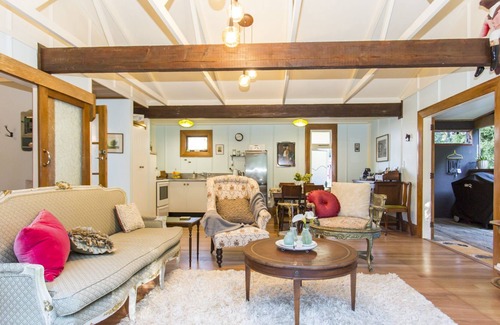Tucked away in complete privacy and tranquility you will find it hard to believe you are in the heart of Oakura Beach Village. Pond Cottage is located among 9 acres of stunning, sheltered gardens with an abundance of bird life, river bound land and a wonderful magical pond. You will be arriving to absolute paradise! This spectacular property was featured as part of the 2016 NZ House & Garden Tour.