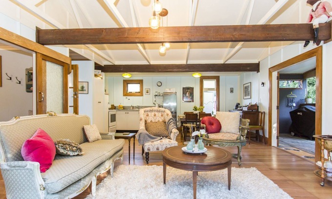 Head up on to the rustic timber veranda, open the front door and be greeted with an eclectic mix of luxury and warm rustic timber charm. Plenty of room for family to come together while still having their own space, featuring 4 bedrooms, 2 bathrooms and a teenage retreat with its own kitchenette. The owners have lovingly created the most amazing hideaway that will instantly have your relaxed.