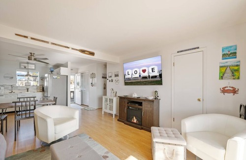 You’ll love kicking back in the Living Area after a fun-filled day on the water, and enjoying Free WiFi and Flat Screen TV. Dressed in Coastal Blues and Grays, its palette is pulled from Nature itself. Sink into the comfy Sectional after a fun-filled day at the Beach, or step outside onto the Covered Deck to take in Channel Views that will leave you breathless. Overlooking Assateague Island and Assateague Light, the beauty is hard to describe - you may even see ponies grazing across the Channel in the Marsh.