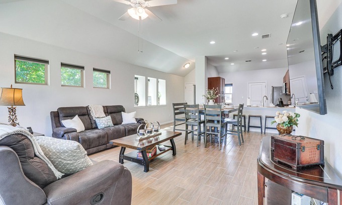 Settle into the sweet spot between Austin and San Antonio at this Kyle vacation rental. This bright 3-bed, 2-bath home is your ideal launchpad for local activities, from floating the San Marcos River to catching a concert at Buck’s Backyard. After a full day of Hill Country outings, you’ll love coming home to a quiet neighborhood and all the modern comforts you need to recharge for another adventure.