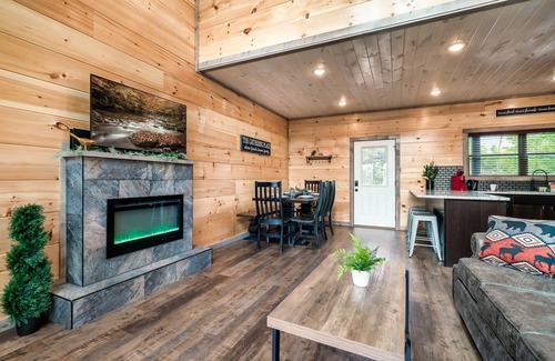 Bring your family and friends to The BOUJEE SPRUCE - packed with fun, custom features that the whole family can enjoy! The cabin sleeps up to 12 guests among 4 bedrooms and 3.5 baths. Kids will LOVE the upgraded bunk room with tube slide, TV, and arcades. Everyone can enjoy a dip in the indoor pool and outdoor patio hot tub. Set up a camp fire out front in the awesome fire pit. The back deck captures a great view of the Smoky Mountains and includes a propane grill. Families will enjoy the views, the pool, and the area for a great getaway near the Smoky Mountains.
