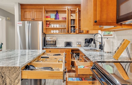 The best place to start the tour of our gorgeous home is the majestic open-concept design living area on the main floor. The home's heartbeat features a relaxing living room leading into the fully equipped kitchen and an inviting dining area. Natural sunlight accents the tastefully picked furniture to reinforce the pleasant style.