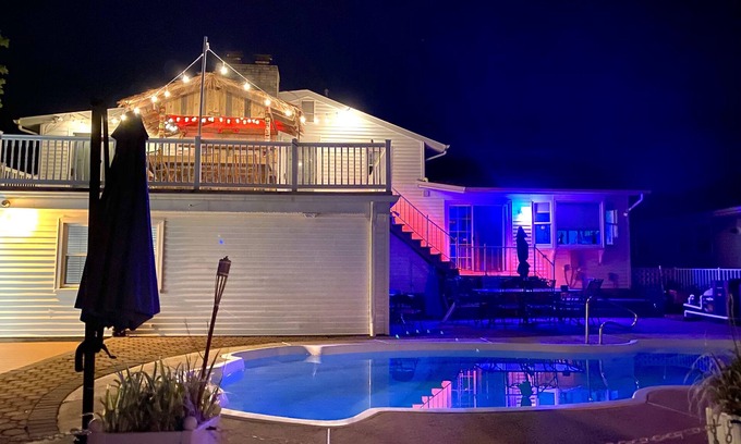 POOL, TIKI BAR, WATERFRONT home, 8 LBI Beach passes in Mystic Island NJ | House in Mystic Island