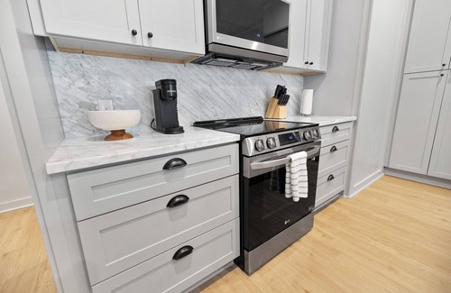 Full-size refrigerator, stove, oven, microwave, & dishwasher