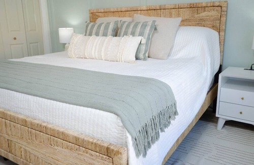 You won't be able to resist the kitchen as it is ready for you to cook many meals or spread out delicious dishes from one of the many restaurants in the area that offer takeout or delivery. It is fully equipped with all of the plates, utensils, sharp knives, pots, pans and drink ware you will need for your stay. We even have plastic cups (with lids and straws), bowls, plates and utensils for the kiddos. The fridge and the sink both offer filtered water for drinking and cooking needs. Coffee lovers will enjoy the array of options for brewing the perfect cup - choose between a Ninja coffee maker, a Nespresso, or a French press and use the the bean grinder or milk frother for an added treat. Tea lover? We have you covered as well with a stainless steal kettle.
