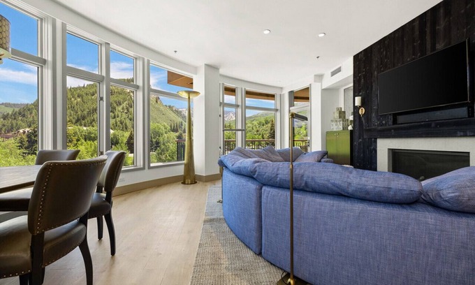 Experience the ultimate in luxury and convenience. Relax with panoramic views of the majestic mountains and the serene river, from the stunning curved spacious living area. Platinum+ location at the base of Beaver Creek Mountain, in the main building of the Riverfront Resort & Spa (unit #351A), voted by the readers of Conde Nast magazine as one of the top resorts in the USA. Designed for comfort, ideal for discerning guests seeking to create unforgettable memories. *See additional resort fees below*