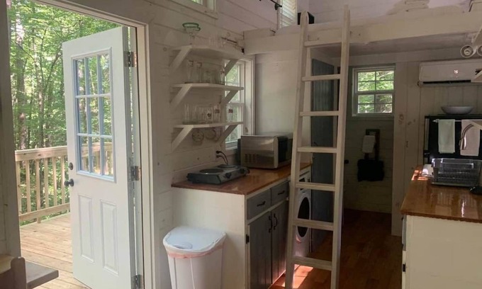 Porcini is the 2nd of 3 Tiny Homes near the Creekside Cabin listing. Two people can rent this tiny home on its own or you can pair your booking with the other two tiny homes and the main cabin, Suches Creekside Cabin. They are located in the National Forest and you can hear the babbling creek that used to be dammned to create the old mill, from your tiny home. Minutes to Winfield Scott and Vogel State Park. If you enjoy hiking, cycling or kayaking this is the perfect place to visit.
