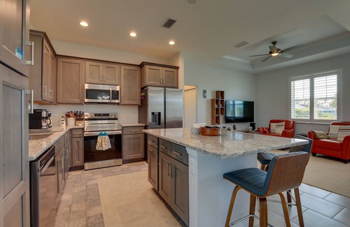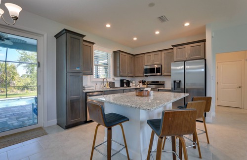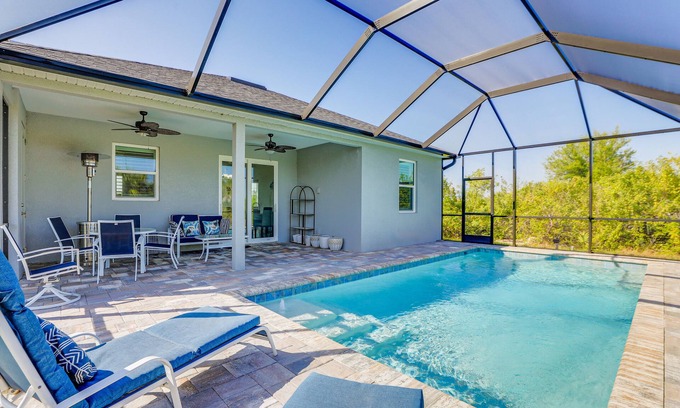 Immerse yourself in the soothing vibe of sunny Florida at this modern and bright 3-bed, 2-bath home. This Port Charlotte vacation rental is the perfect place for your next Gulf Coast getaway, featuring a heated outdoor pool for refreshing swims all year round, a screened lanai with a heater, and an open interior with all the essentials. Grab the beach gear for a day at Don Pedro Island State Park, get out on the water with a fishing charter, or hit the links at one of many nearby golf courses.