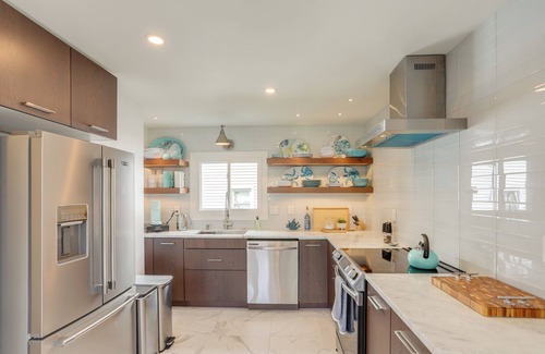 Experience the tranquility of Port Clinton, OH, when you stay at this newly remodeled vacation rental, boasting high-end finishes and lake views. Unwind by the fire pit and admire the surrounding flowers while the kids play fetch with a pet in the fenced backyard. With 4 bedrooms, 3 baths, and 2,000 square feet, this home offers plenty of space for everyone. Going out? Walk to Waterworks Park's sandy beach, stop by a restaurant on Main Street, or take the family to African Safari Wildlife Park!