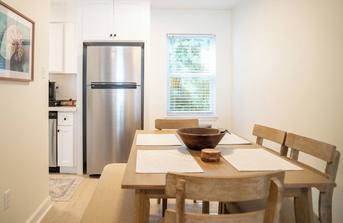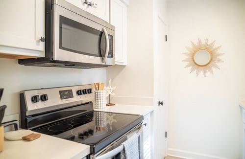 Enjoy an open floor plan featuring a fully equipped kitchen, perfect for preparing meals when not dining at Ocean Springs hotspots.