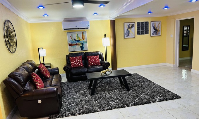 This 4 Bedrooms House provides accommodation with Air Conditioner, TV, Security/Safety, for your convenience. This House features many amenities for guests who want to stay for a few days, a weekend or probably a longer vacation with family, friends or group. This House is less than 1 km from Portmore, and gives visitors the opportunity to explore it. The rental House has 4 Bedrooms and 4 Bathrooms to make you feel right at home.