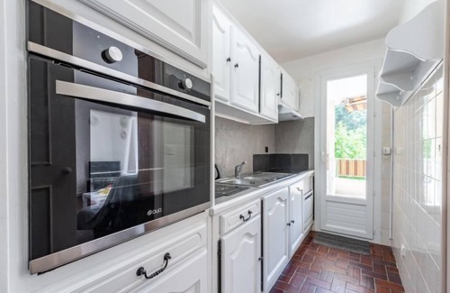 3-room apartment 53 m2 on 1st floor, south facing position. Partly renovated in 2021, comfortable and rustic furnishings: living/dining room with dining table and TV (flat screen). Exit to the terrace. 1 room with 2 beds (90 cm, length 190 cm). 1 room with 1 french bed (140 cm, length 190 cm). Kitchen (oven, dishwasher, 4 ceramic glass hob hotplates, toaster, kettle, microwave, freezer, electric coffee machine). Shower, sep. WC. Electric heating. Terrace 13 m2, south facing position. Terrace furniture. Facilities: washing machine, iron, hair dryer. Internet (WiFi, extra). Parking space n 37. Please note: non-smokers only. Smoke alarm. FR843045015