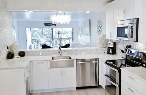 All of the surfaces in our POSHPADZ Properties are cleaned with Anti-virus cleaners which kill 99.9% of viruses for 24 hours. "Villa Playa Blanca" is a luxury 2 bed 2 bath condo located 600 meters from the sand of Jupiter Beach. Sleeps 6 4 in bedrooms and a luxury sleeper sofa in the living room. The unit is located on the 2nd floor and offers a large screened in balcony with lovely views of Carlin Beach Park which is located just across from Jupiter Beach. The community offers 2 heated pools, hot tub, tennis courts, and an on site restaurant (opening dates vary)which overlooks one of the community pools and the community pond. This property has been fully renovated & designed from floor to ceiling by our POSHPADZ Luxury Interiors team. Both bedrooms will offer luxurious King size beds and flat screen TV's. Everything is brand new and you cant beat the prime location. There is even a George Foreman Grill on the balcony!