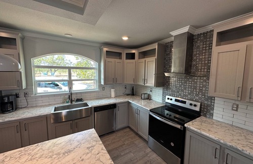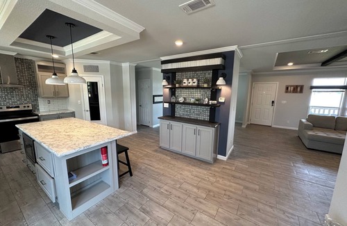 Natural Texas Ranch Vibes with modern comforts, built and furnished in 2023. 1 Gig high-speed Wifi, 62” living room TV, 52” master bedroom TV, fully equipped kitchen, laundry room with washer and dryer.
