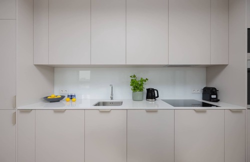 A spacious, modern apartment designed for six guests invites you into interiors where comfort and elegance go hand in hand. A light color scheme, carefully selected decorative details, and large windows create a calm atmosphere perfect for relaxation. The centerpiece of the apartment is a generous living room with a 75-inch television equipped with Smart TV functionality and access to cable channels. From the living room, there is access to a balcony, ideal for enjoying a morning coffee or a moment of fresh air. Three separate bedrooms ensure privacy and a restful night’s sleep for all guests. Each is furnished with a comfortable double bed, and one additionally features a desk, perfect for working or studying. The open-plan kitchen has been designed to make everyday cooking both simple and enjoyable, and is equipped with an oven, electric hob, dishwasher, fridge with freezer, microwave, kettle, and coffee maker. A large dining table provides ample space for shared meals. The apartment offers two elegant bathrooms, one with a bathtub and the other with a walk-in shower. One bathroom also includes a washing machine and an electric clothes dryer, adding convenience for longer stays. Comfort throughout the year is ensured by ducted air conditioning with an individual control panel in each room. For safety, carbon monoxide and smoke detectors are installed. Fast Wi-Fi allows seamless connectivity, and the building is equipped with an elevator. Located in a modern development surrounded by greenery, the apartment is an ideal choice for families with children, couples, and groups of friends who value style, comfort, and proximity to urban amenities.