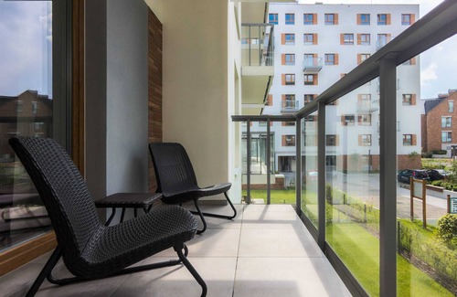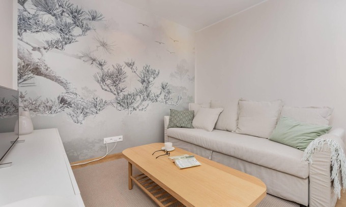 This stylish 45,5 m² apartment offers accommodation for 4 guests, making it a great choice for a couple or a family with children. The beautifully decorated apartment consists of a living room with a kitchenette, a bedroom and a bathroom with a shower. The living area opens onto a balcony equipped with garden furniture, making it a great place to relax in the morning with a cup of coffee in hand. Fashionable furnishings, elegant accessories and functional arrangement of the apartment makes it satisfy the aesthetic sense of even the most demanding guests. A calm color palette in shades of beige give the apartment an extremely pleasant character. In addition, the apartment is filled with natural daylight, making the interior bright and pleasant. Convenience during your stay is ensured by comprehensive amenities, such as free Wi-Fi, a flat-screen TV with SmartTV, as well as necessary kitchen and bathroom accessories. Guests are provided with complimentary toiletries, towels and linens for a good start to their accommodation. A private parking space is provided for guests' use.