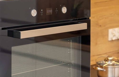 Induction hob, fridge with freezer, oven, microwave, dishwasher, cutlery and crockery set, kitchen utensils, electric kettle, coffee machine (capsule)