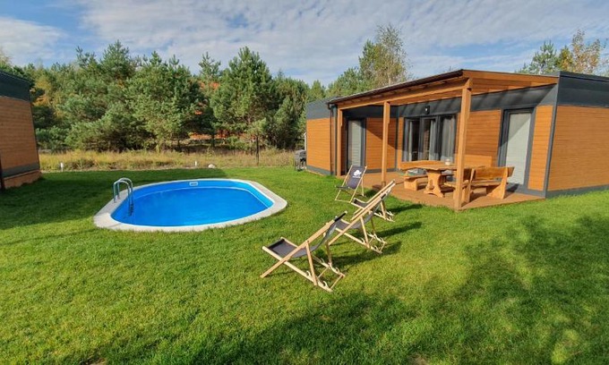 Prażmowo 49 has garden views, free WiFi and free private parking, located in Prażmowo, 8.7 miles from Boyen Fortress. The lodge provides guests with a terrace, pool views, a seating area, a flat-screen TV, a fully equipped kitchen with a fridge and a stovetop, and a private bathroom with shower and a hairdryer. Prażmowo 49 has a playground. Guests can swim in the outdoor swimming pool, go hiking or cycling, or relax in the garden and use the grill facilities. Sailors' Village is 12 miles from the accommodation, while Tropikana Aqua Park is 13 miles from the property. Olsztyn-Mazury Airport is 54 miles away.