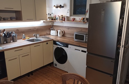 As you settle into this 2-bedroom, 1-bathroom rental, you'll find a living room, a desk, and an office. Connect to the free WiFi, or get cozy in front of the TV; there's also a DVD player. Bathroom amenities include a hair dryer and towels. Prepare a home-cooked meal in the kitchen, complete with a stovetop and a refrigerator, as well as a coffee maker, an electric kettle, and a microwave. And you won't have to pack extra clothes, because you'll also have access to laundry facilities. Other amenities include bed sheets, an ironing board, heating, and limited housekeeping.