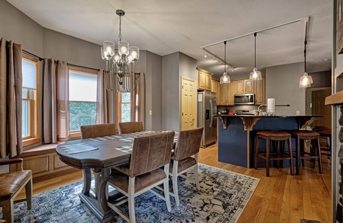 Enter through the spacious ground level, featuring an oversized garage, bonus entertainment room with large leather couches, and an entertainment center perfect for family movie night. A full bathroom includes a washer and dryer, making it easy to shake off the day's adventures before heading to the main level.