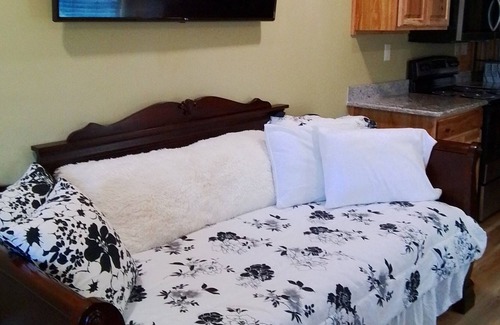 One bedroom cabin close to beautiful Grand Lake, close to town, boat ramps, and the lake, very nice and immaculately clean, full kitchen, refrigerator with ice maker, stove and microwave. One bedroom with double bed. Daybed in living room, sofa with TXL sleeper bed. Deck on front, quiet country setting yet close to town. Plenty of room to park boats, and trucks, electric hook ups to charge batteries. Ring doorbell with camera that shows driveway, but it is a very safe neighborhood.