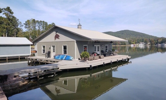 Boom system installed to keep eel grass out of swimming area! Enjoy this large 2 bedroom apartment with dock access. Don’t pull your boat out of the water - if a storm blows in or you just need a nap! 55 inch TV and wifi, full size washer and dryer. Guests enjoy access to water with a pier. (boathouse slips unavailable) Great for fishermen (women) or a family getaway. Gas grill with outdoor seating area. Located midway between Guntersville and Scottsboro, and just 35 minutes to Huntsville.